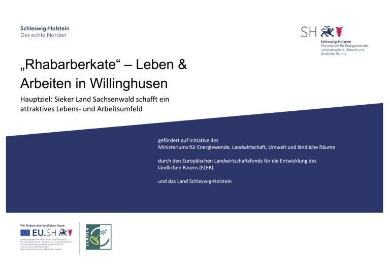 Gefördert durch das Ministerium für Energiewende, Landwirtschaft, Umwelt und ländliche Räume, den Europäischen Landwirtschaftsfonds für die Entwicklung des ländlichen Raums (ELER) und das Land Schleswig-Holstein.